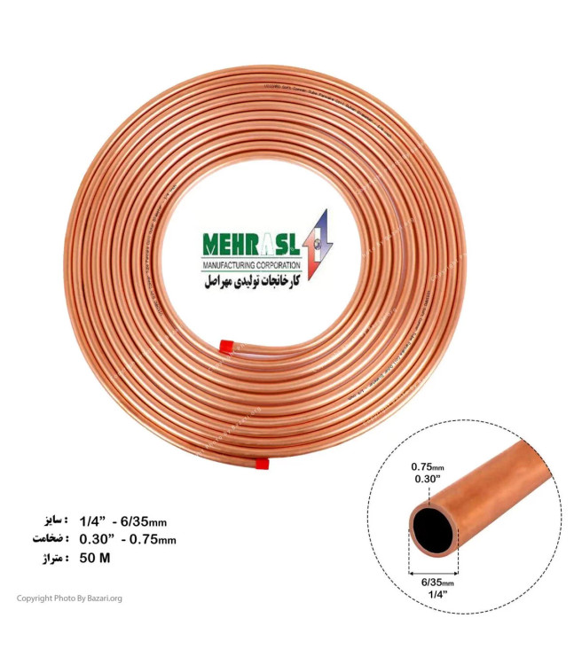 لوله مسی کلاف 50 متری سایز 6 - 1/4 اینچ کد 30-0 مهراصل (MehrAsl)